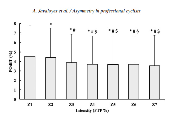 Being the type of person I am, I dove into this. How common is a L/R imbalance and how bad is mine? Some googling soon taught me that 56/44% is definitely on the higher end. But power imbalances are not uncommon. A study among 112 pro cyclists competing in two editions of the Giro d’Italia showed that also among pro cyclists, power imbalances are very common.